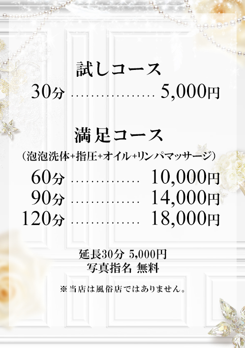 当店のセラピストは容姿が良いだけではなく、技術、マナー、気遣い等、接客面にも妥協をせず、お客様に身も心もゆだねて頂けるような愛されるセラピストとの出会いをお約束致します。どうぞ、ご安心してご利用くださいませ!